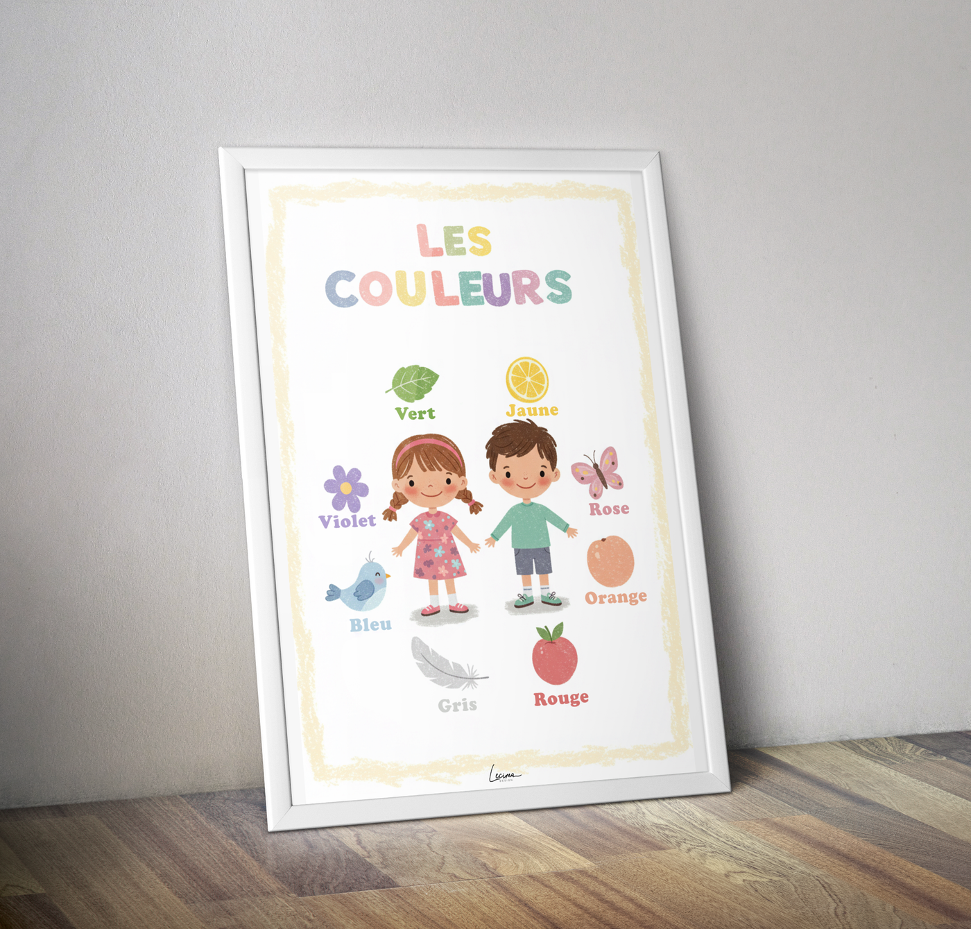 Affiche pédagogique Les couleurs - Poster décoration chambre