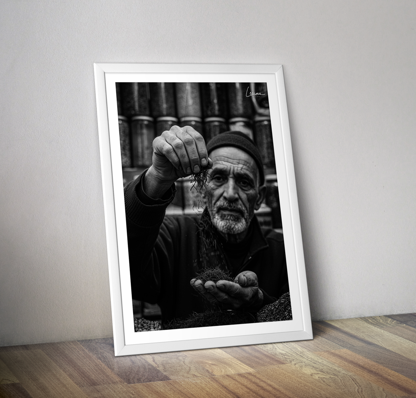 Affiche noir et blanc épicier Maroc - Poster safran orient - 70x50 cm